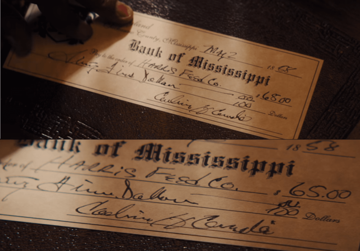 In Django Unchained, we get out first glimpse of Stephen as he's making out a check. In both these shots the check looks noticeably different and the numerical amount has been changed from 68 to 65.