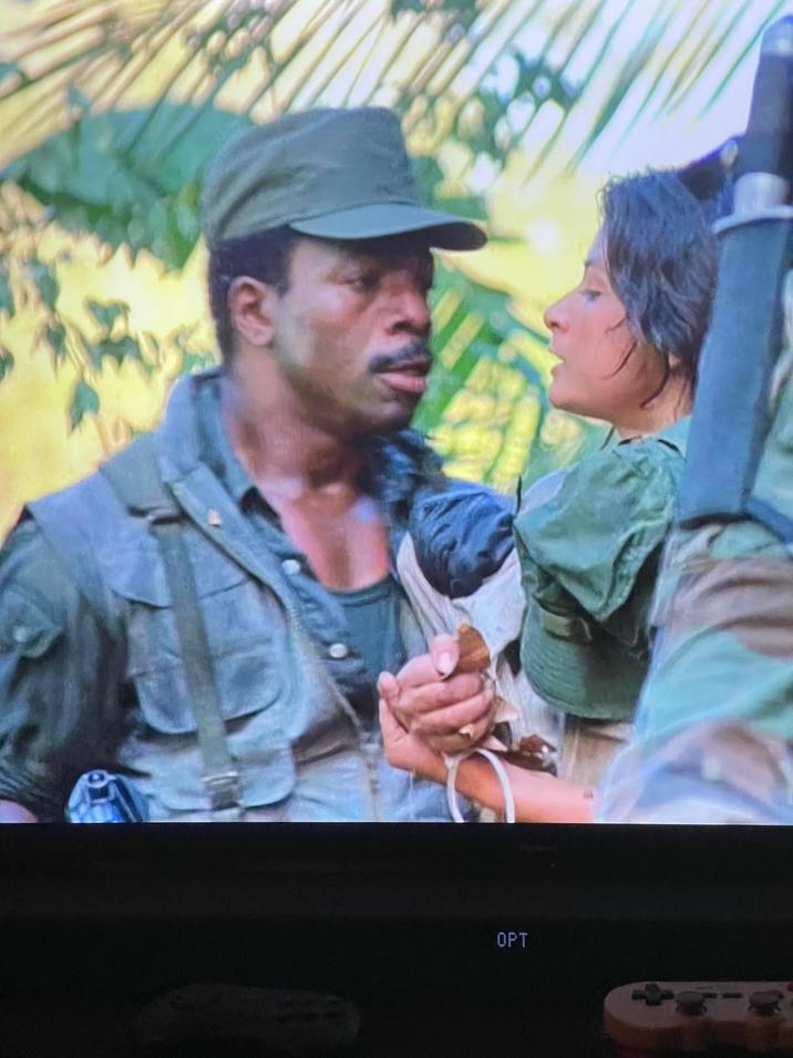 In Predator, the zip tie cuffs aren’t actually around one of Anna’s wrists in a scene