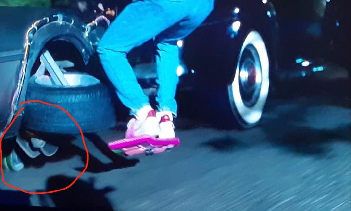 Back to the Future II (1989), you can see DeLorean flying car rolling on small wheels