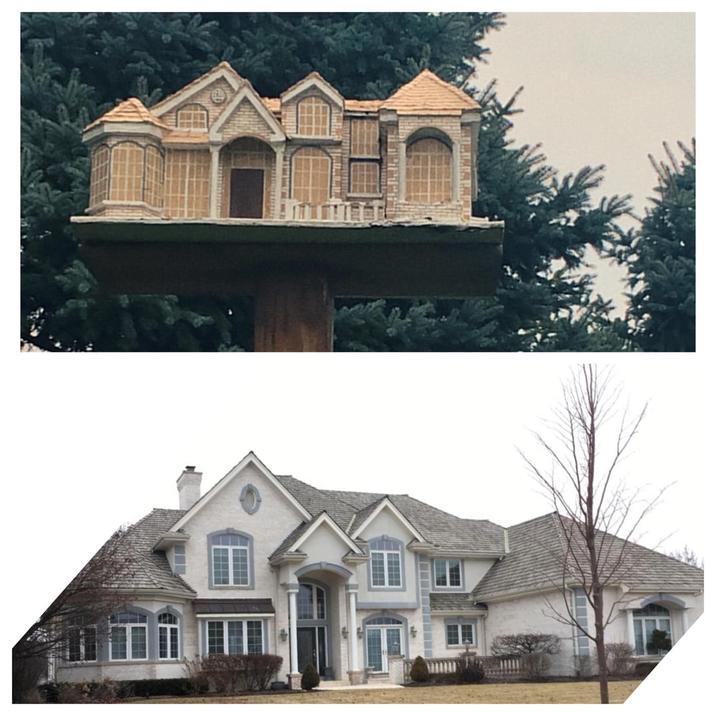 Parents have a bird house replica of their home