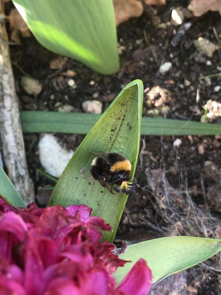 Dead bee with a flower growing from it