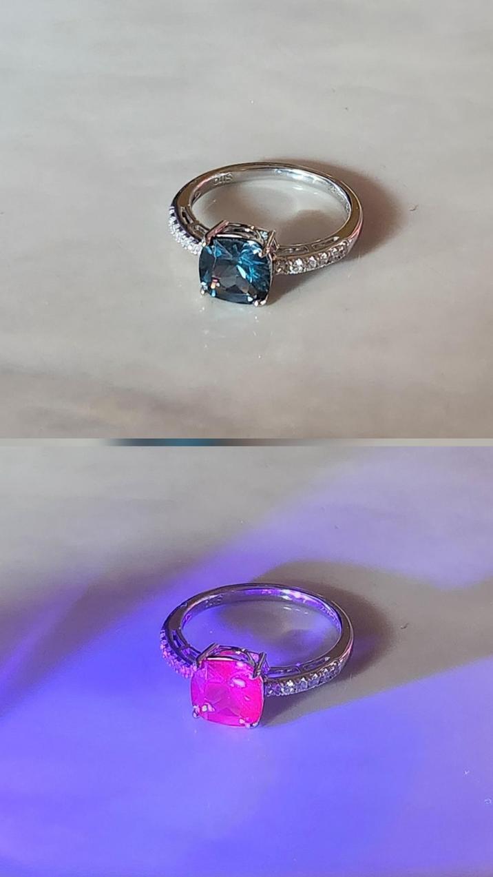 Blue stone turns red under UV light