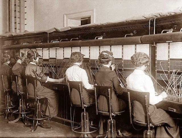 An old telephone exchange office, 1915