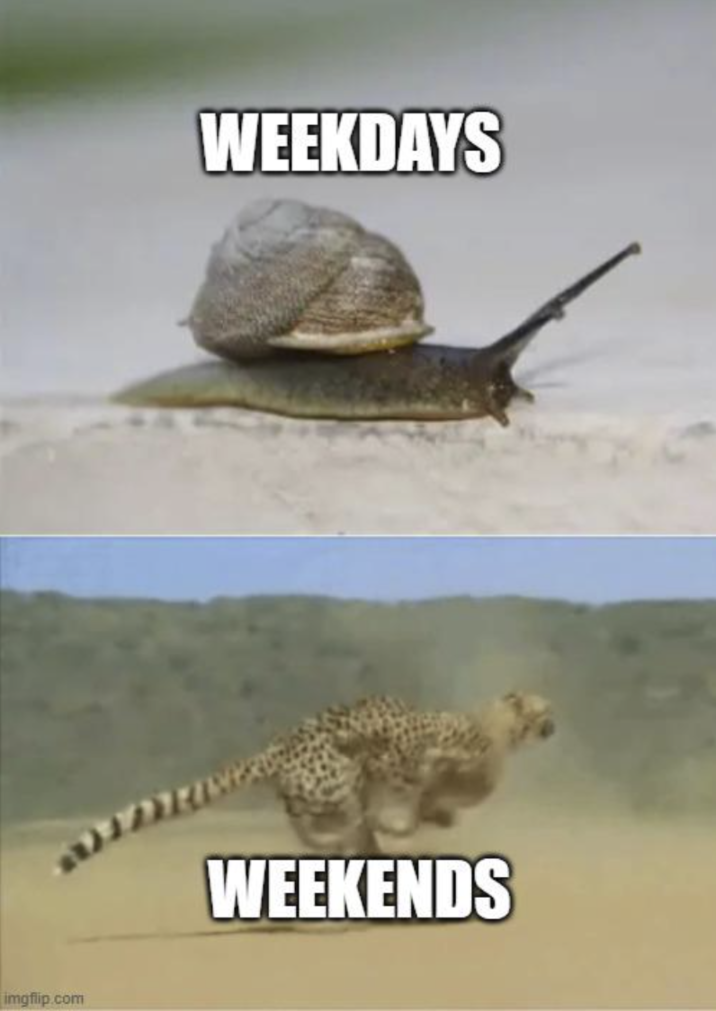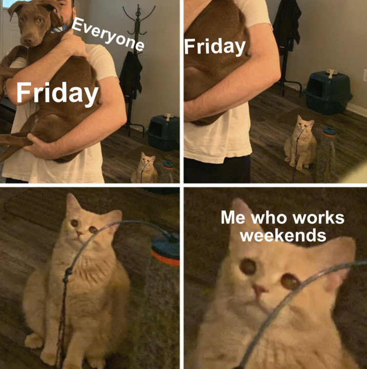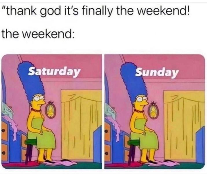 From memes about coworkers and their plans to sleeping in to ones about people who actually have to work over the weekend, weekends mean something slightly different to everyone. Whether someone is resting up, taking off on vacation, or just catching up on laundry, an upcoming weekend is always welcome.