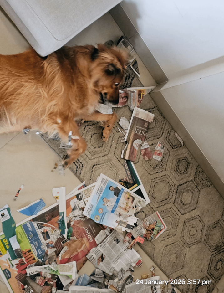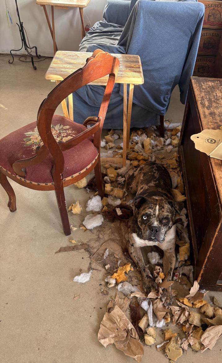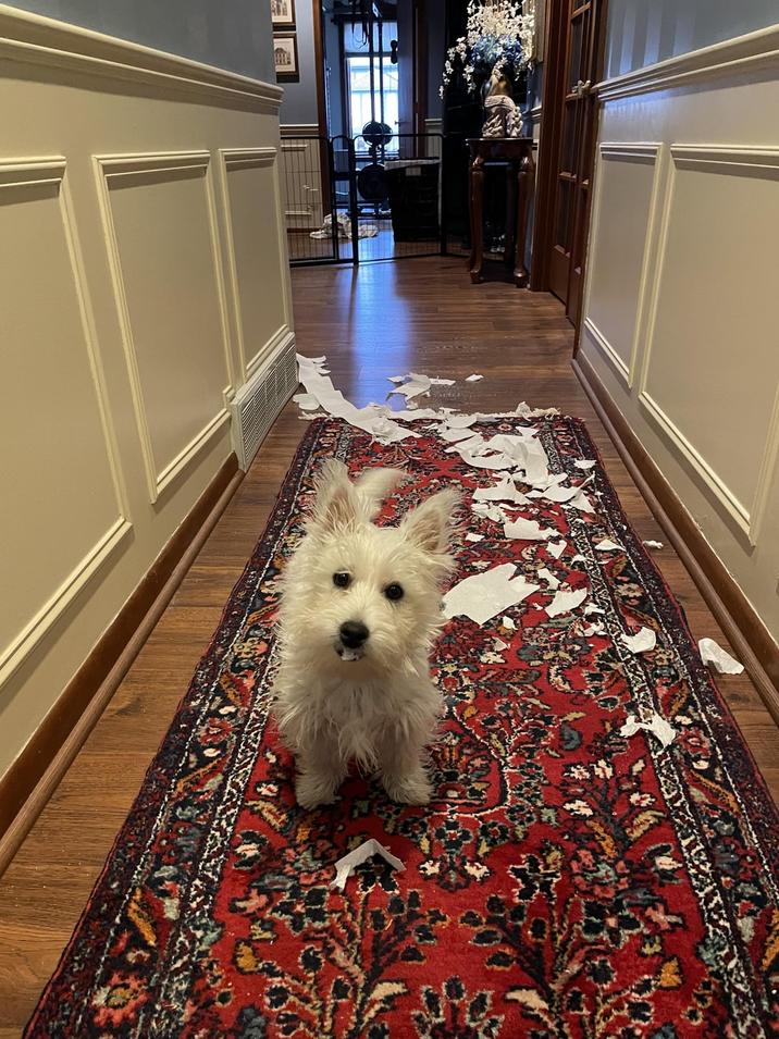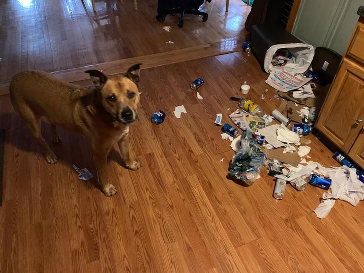 Dogs can get up to some serious mischief inside and outside of the home. Dogs can be found making messes, stealing food, and causing chaos wherever they go. It is hard to stay mad at them, though, because they are just that cute. Dogs have a way of showing they are guilty, it's funny to see them being so aware of doing something wrong.