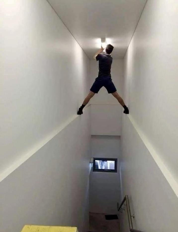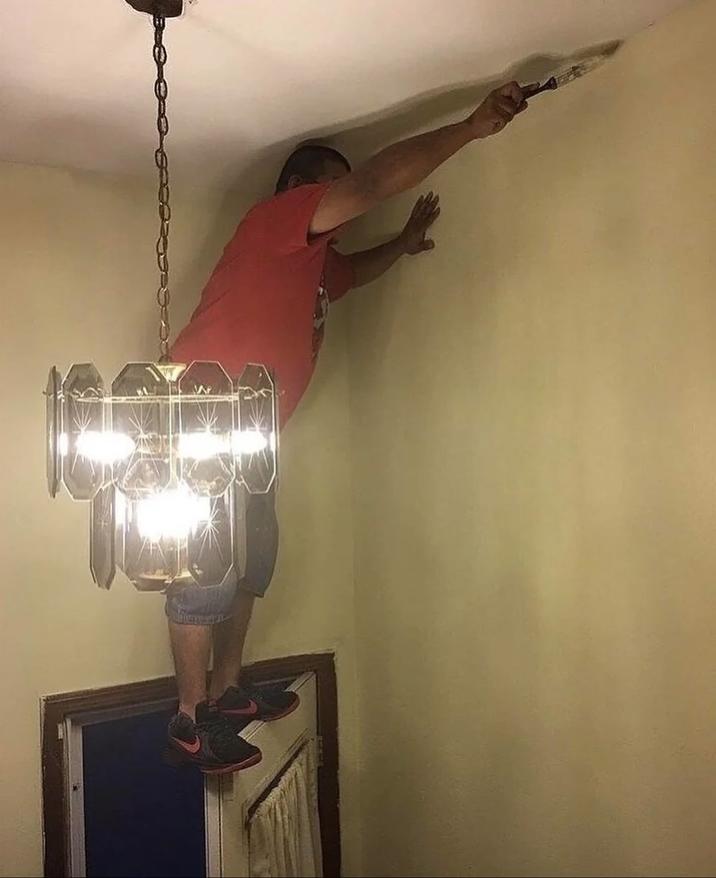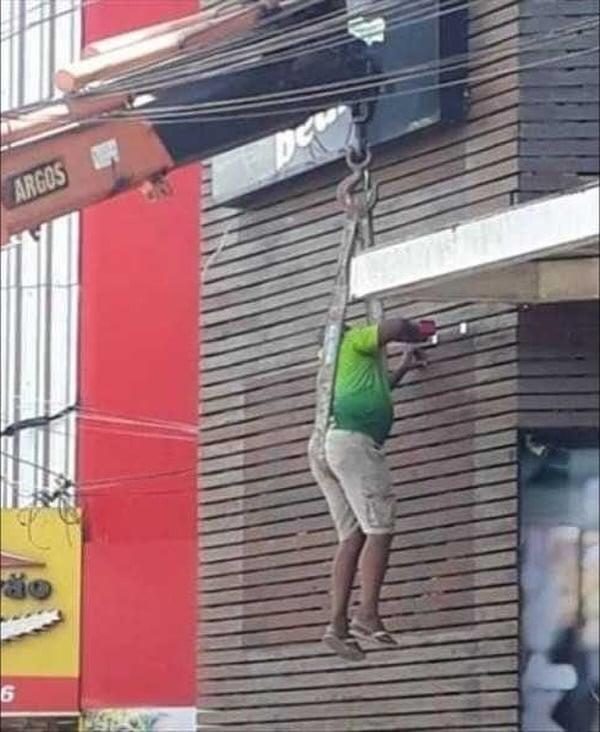 Many times, people have been caught in compromising positions or doing things in super unsafe ways in the name of getting something done. Don't take anything the people are doing in these images seriously, and don't try these methods at home.