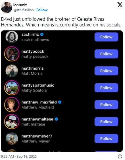 On top of that, many messages from D4vd's Discord server have leaked, alleging that he was dating a Celeste in 2024. One message even tells him to drop the song about the "missing girl Celeste Rivas Hernandez."