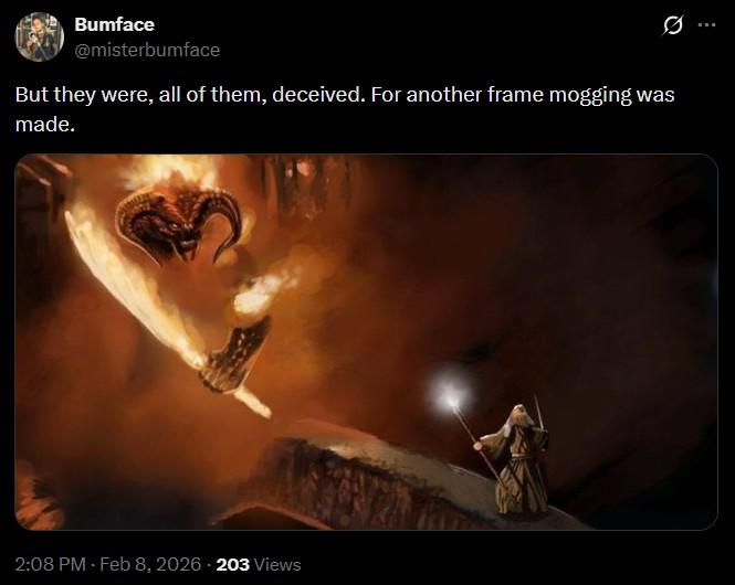 Many of the memes point out the absurdity of the phrase by working it into pre-existing meme formats. Others use the phrase as a punchline and act like Clavicular getting frame mogged is a massively important news story, comparable to some great tragedy.