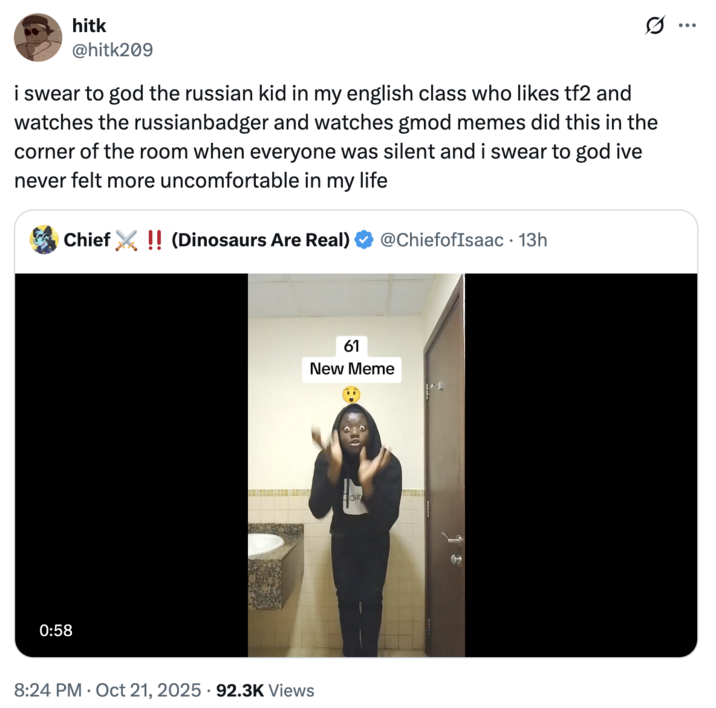 Alternatively, the "61" meme is an homage to when "67" was still funny in the eyes of the internet's most irony-poisoned youth.